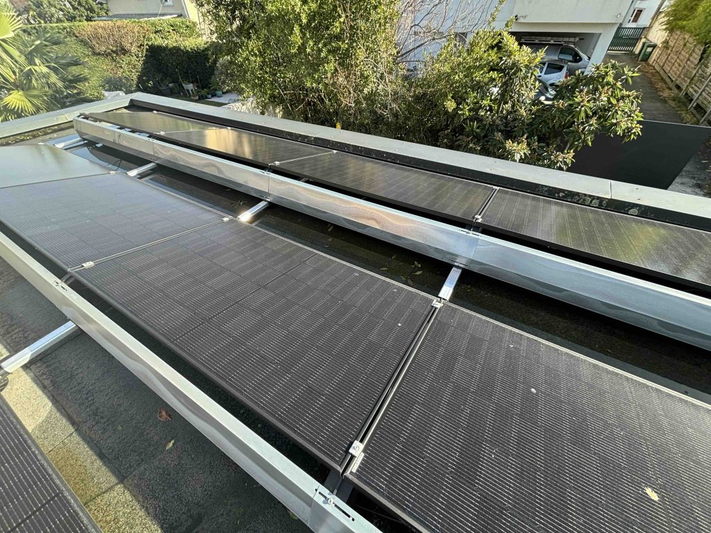Pour une installation classique (3 à 9 kWc), la pose dure entre 1 et 3 jours. Nous installons les supports sur la toiture, posons les panneaux, câblons l’installation et mettons en place l’onduleur ou les micro-onduleurs selon le cas.